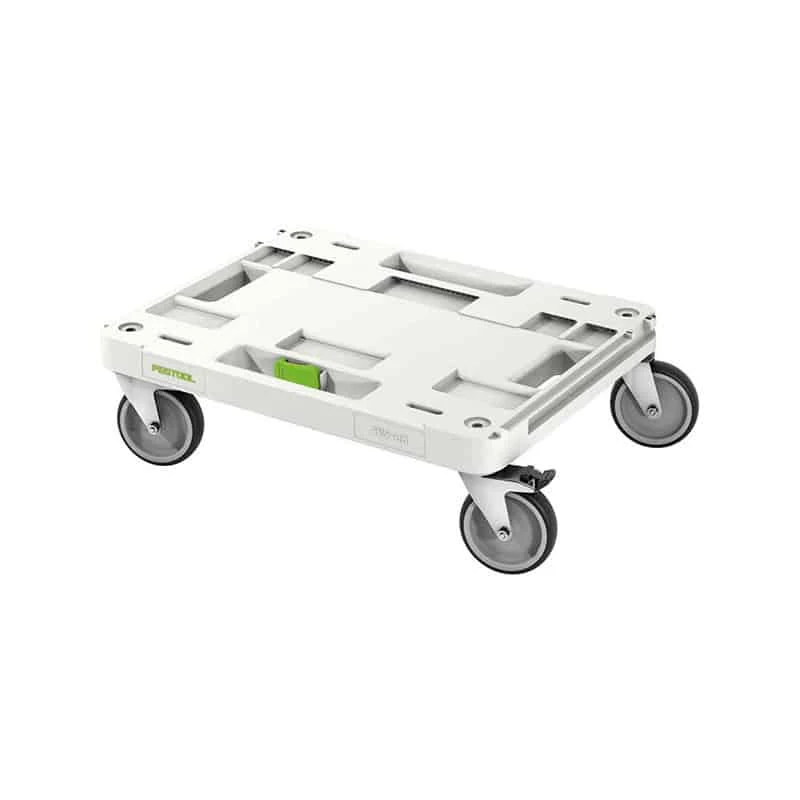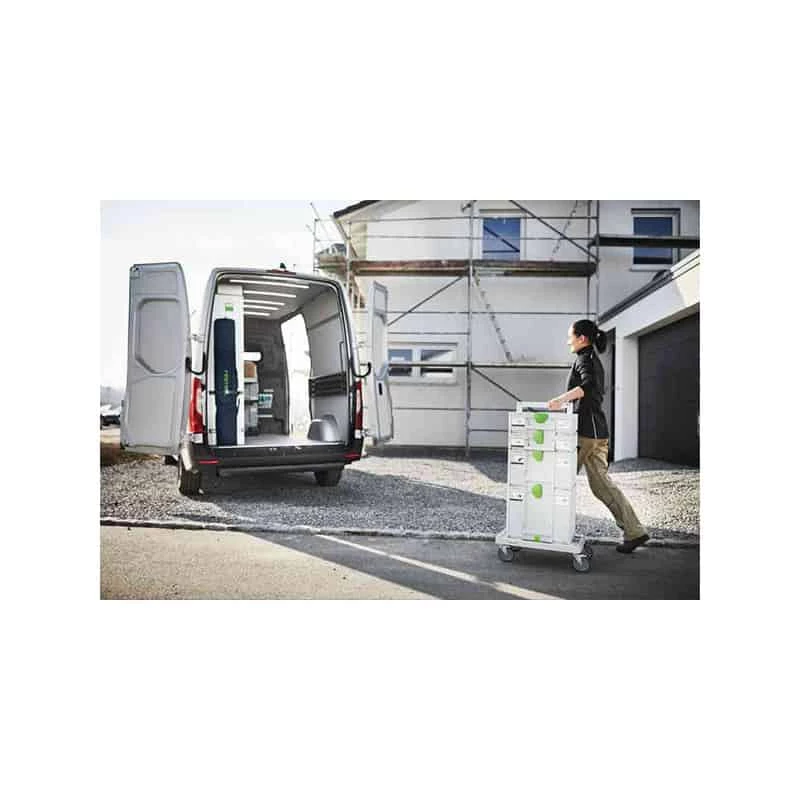 La planche à roulettes SYS-RB Festool est dotée d’accessoires intelligents : les quatre grandes roues tournent à 360°. Elle se transforme ainsi en châssis manœuvrable, idéal pour le chantier et l’atelier.