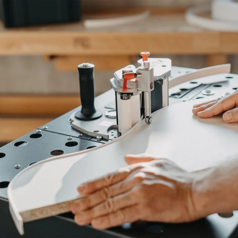 L’appui optimal de la pièce sur des rouleaux à boules mobiles satisfait à quasiment toutes les situations de placage de chants. De plus, la table d’usinage aide à traiter à la perfection les panneaux inclinés, droits, courbes, circulaire et ainsi que des pièces moulées.