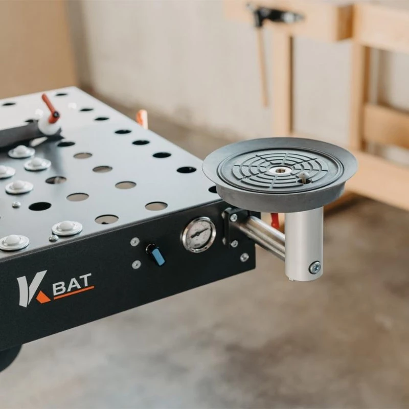 La table d’usinage facilite beaucoup le placage de chants sur des plans inclinés jusqu’à 55°. Pratique, l’amortissement du réglage angulaire et le déblocage pneumatique offrent une meilleure manipulation.