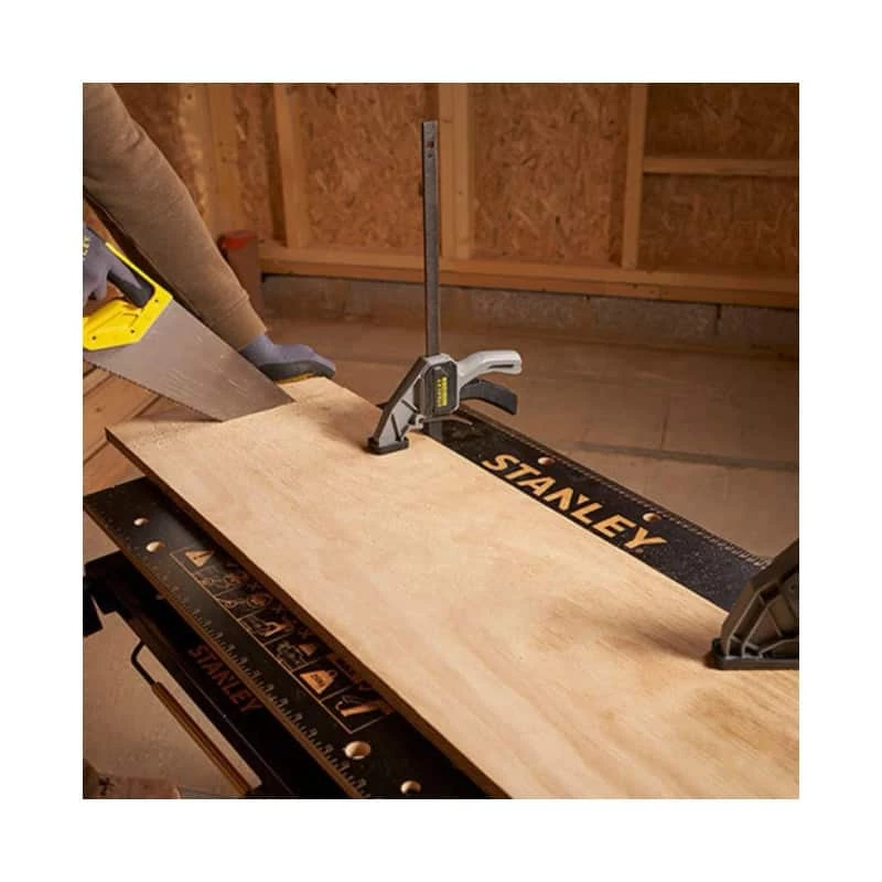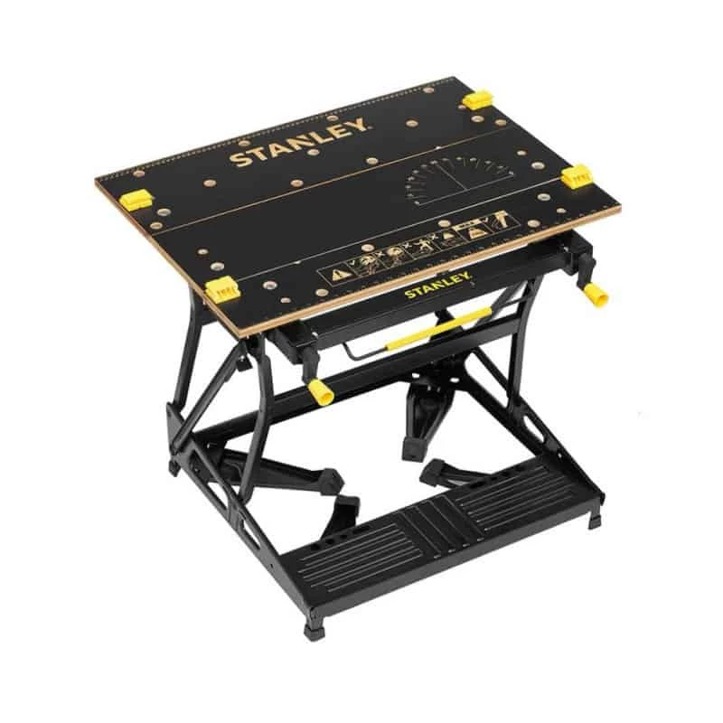 Polyvalent et résistant, l’établi-étau pliable 2 en1 Stanley permet d’effectuer des applications exigeantes. Il est capable de supporter jusqu’à 250 kg de charge. Conçu avec une structure en acier et des panneaux en bambou – plus grande durée de vie que le MDF -, il peut être utilisé comme établi, tréteaux ou étau.