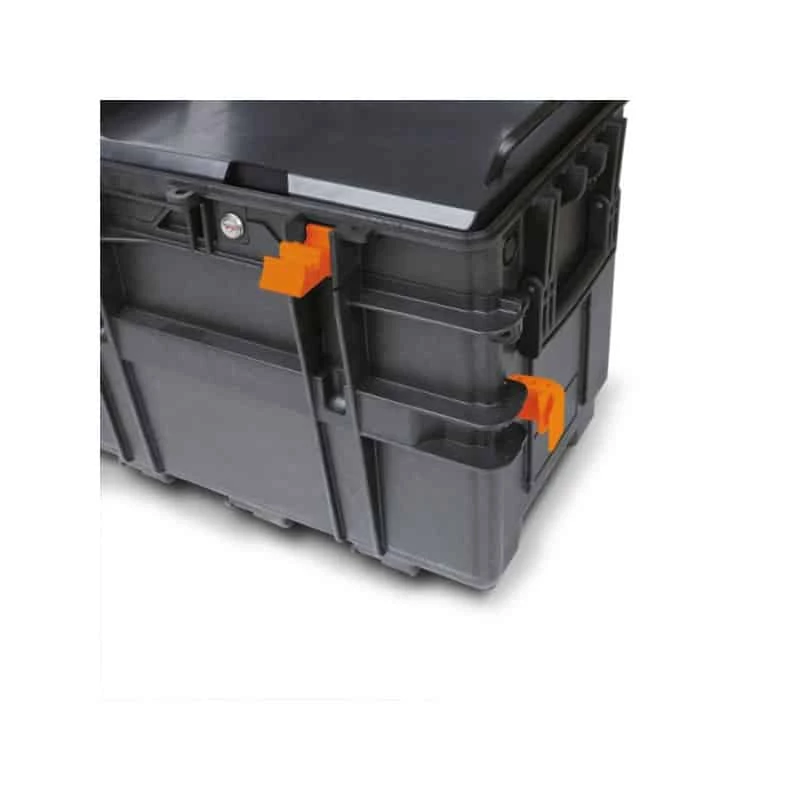 Coffre porte-outils C14 Beta résistant aux chocs. La partie avant est protégée par un couvercle.